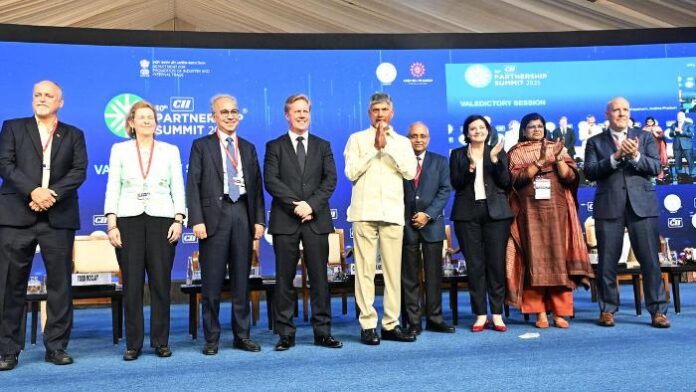 Addressing the valedictory session of the CII Partnership Summit – 2025 here on Saturday, Mr. Naidu said the event was not merely a business affair but turned out to be a cultural exchange and a forum where diverse ideas and social issues were discussed with a vision for the future. He noted that the Summit was enriched by the participation of 30 Ministers from different countries and it had 700 B2B sessions and several MoUs inked.
